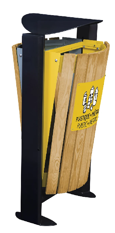 Poubelle espace vert ARKEA Corbeille façades bois 2 x 60L Gris / Jaune