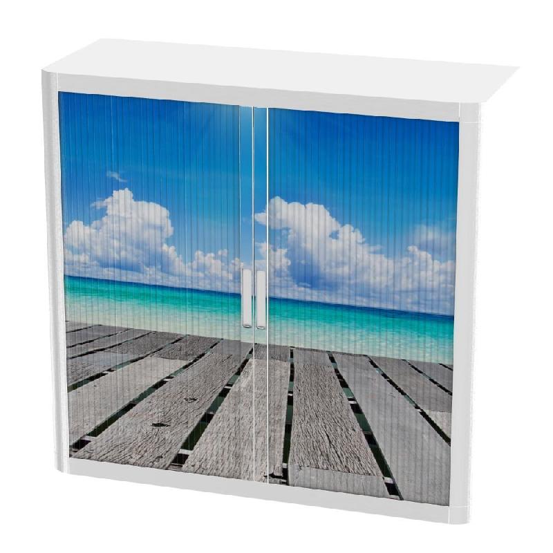 Armoire à rideaux avec décor mer - EasyOffice. - Basse, Ponton -