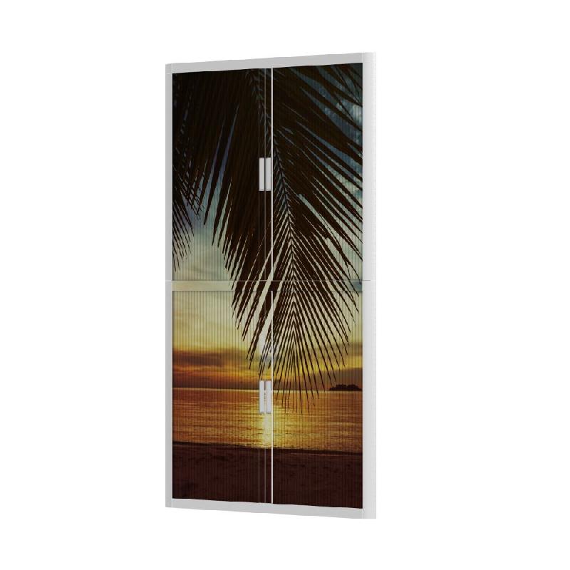 Armoire à rideaux avec décor mer - EasyOffice. - Haute, Coucher de soleil -