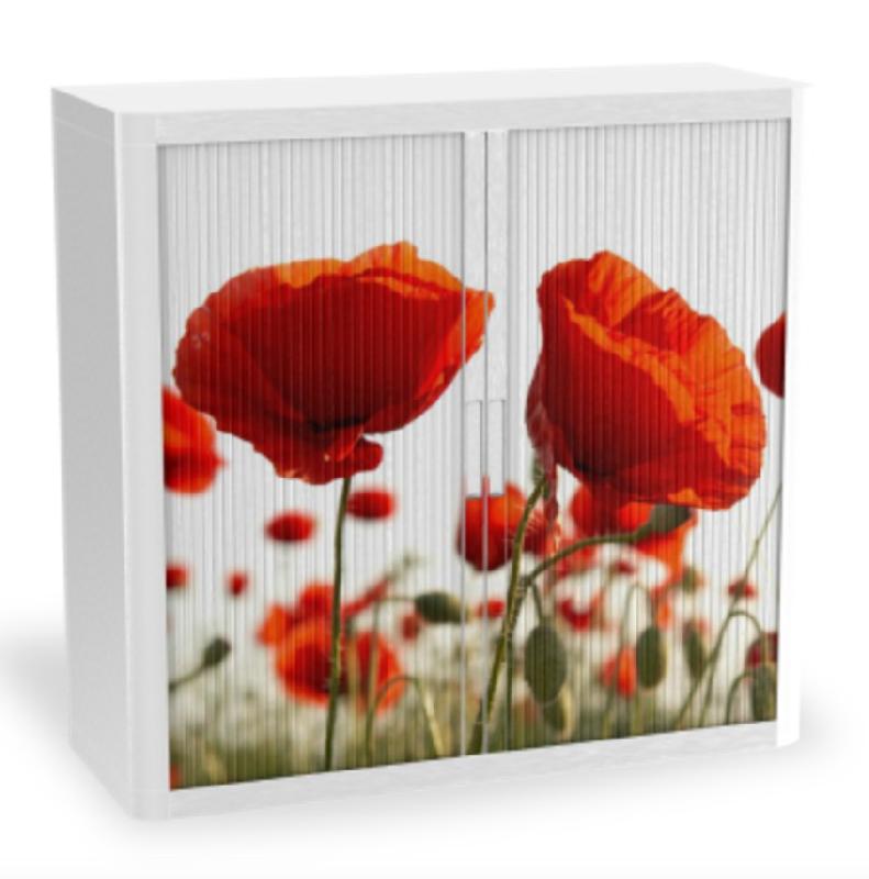 Armoire à rideaux avec décor nature - EasyOffice. - Coquelicots, Basse -