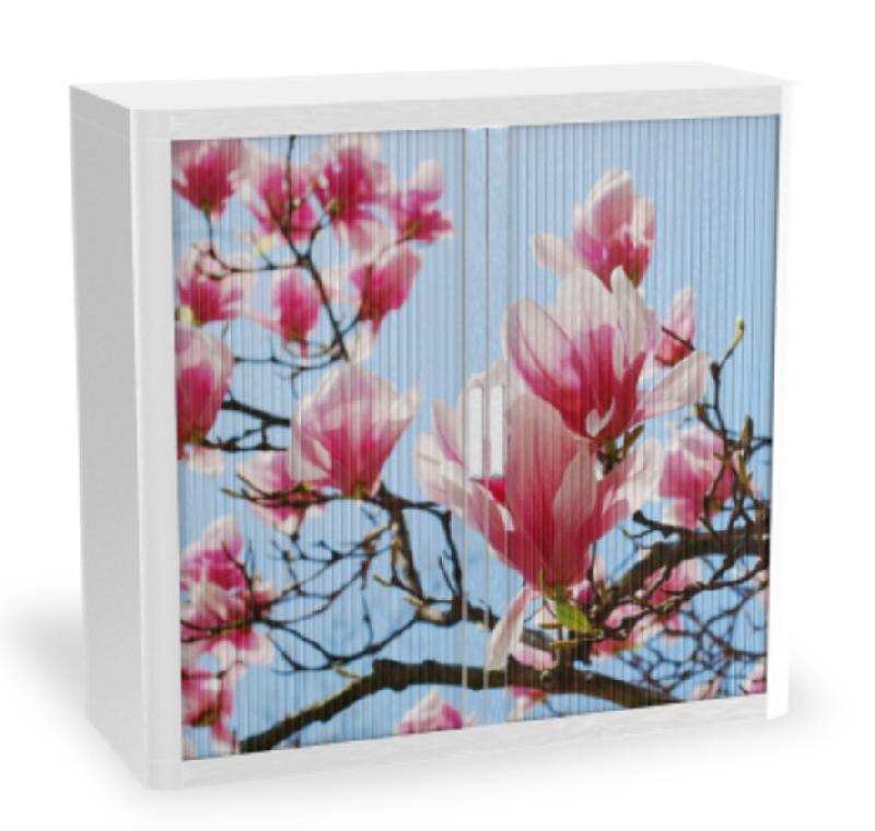 Armoire à rideaux avec décor nature - EasyOffice. - Magnolia, Basse -