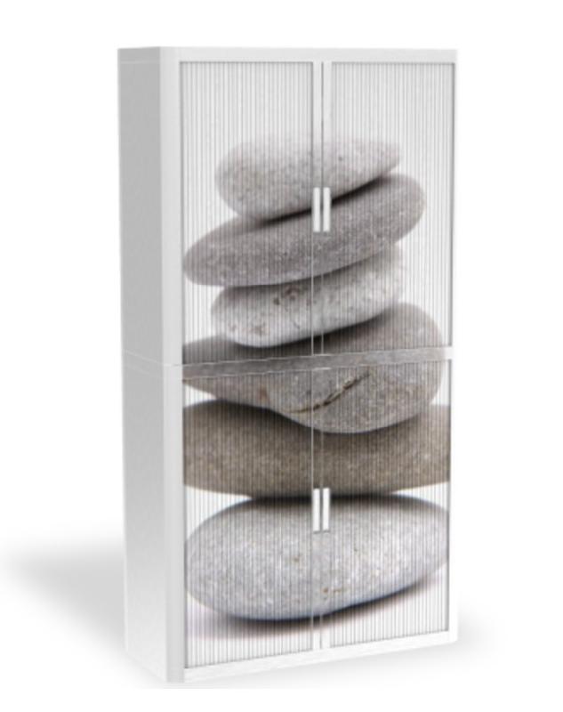 Armoire à rideaux avec décor Zen - EasyOffice. - Galets, Haute -