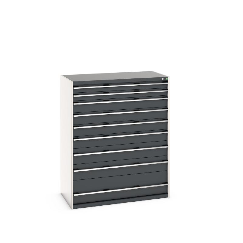 40029031 - Armoire à tiroirs Cubio SL - 10712 - 8.1 - Armoire à tiroirs Cubio SL - 10712 - 8.1 avec 8 tiroirs - Dimensions (LxPxH) : 1050x750x1200 mm - Caractéristiques principales : - Composée d’un caisson en acier avec renforts, charge admissible : 1.5 tonne. - Tiroirs à extension té