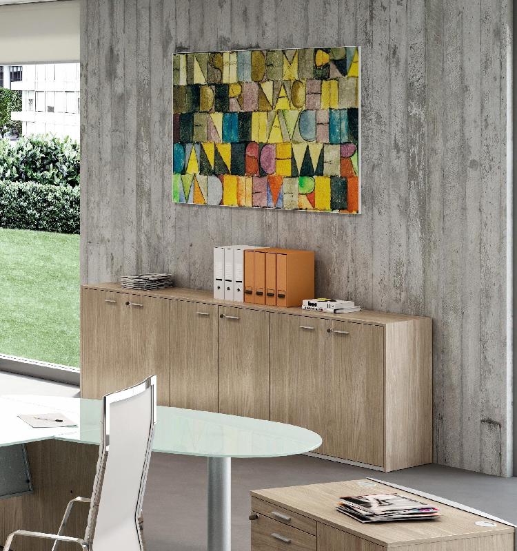 Cette longue armoire trouvera sa place dans tous types de bureaux et offre les mêmes finitions que le mobilier des collections issues de Quadrifoglio et Officity.