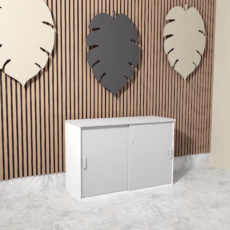 Armoires basses à portes coulissantesEvaluez le contenu de votre armoire en un coup d'oeil !Caractéristiques principales : - Armoire basse en tôle d'acier 10/10è. - Coulissement souple sur galets avec roulements à billes incorporés. - Disponibilité : - 2 largeurs : 1000 mm ou 1500 mm. -