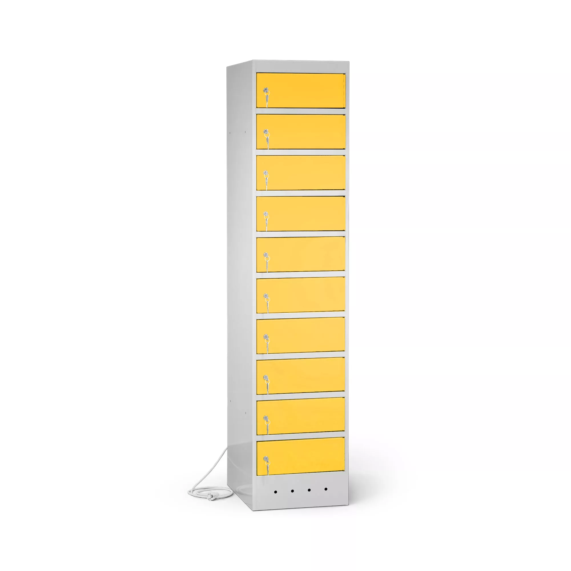 Cette armoire à casiers offre un espace de rangement pratique pour les sacs à dos, les sacs, les manteaux et bien plus encore. Chacun des 10 compartiments est équipé d'une prise de terre et de deux ports USB (USB - A et USB - C), ce qui le rend idéal pour recharger