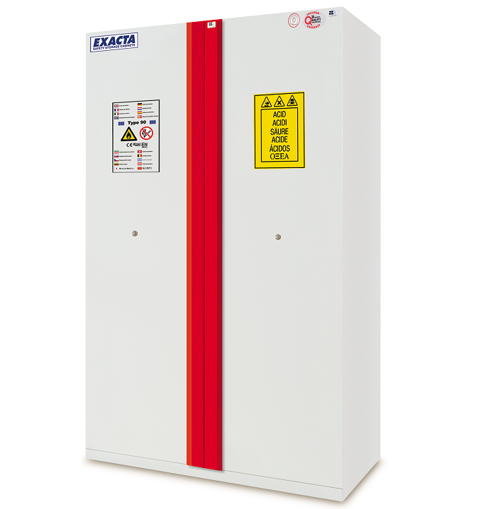 Armoire de sécurité ANTI-FEU 90 mn haute 2 portes 2 compartiments selon NF-EN 14470 BVQI (Bureau Vérification Qualité International Veritas) pour produits inflammables et acides ou bases