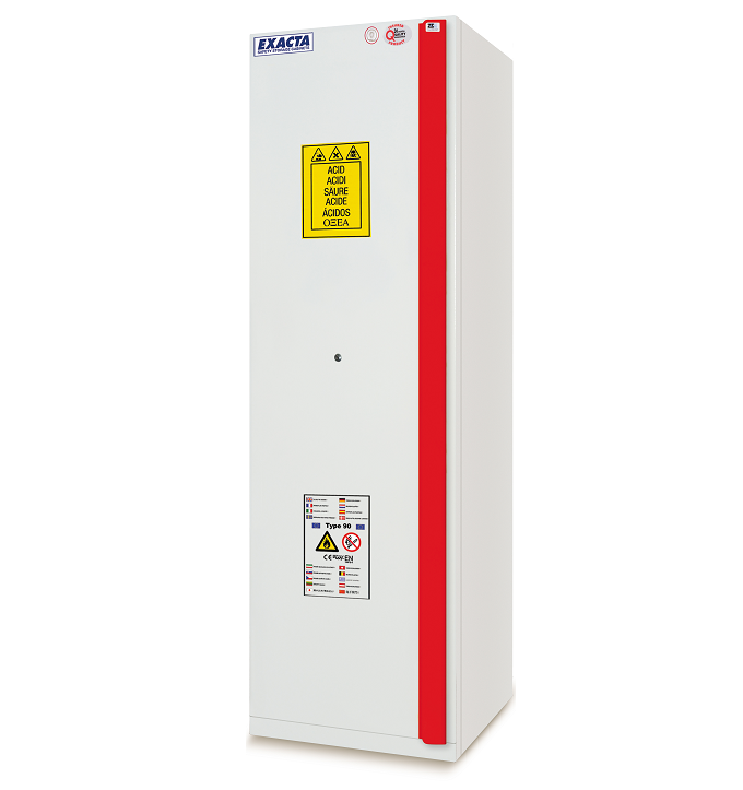 Armoire de sécurité ANTI-FEU 90 mn haute 1 porte 2 compartiments selon NF-EN 14470 BVQI (Bureau Vérification Qualité International Veritas) pour produits inflammables et acides ou bases