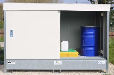 Ce conteneur de stockage est un bungalow en acier galvanisé avec rétention intégrée. Il est parfaitement adapté pour contenir les produits dangereux. - Il s'utilise pour entreposer en toute sécurité des bidons, fûts et pots de différentes dimensions, contenant des produits chimiques, DMS,