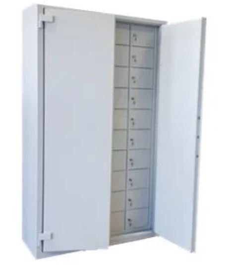 Aménagée sur la base d'une armoire forte ROC'SECUR, l'armoire forte Police peut être fabriquée sur mesure en fonction de vos besoins tout en répondant à la législation en vigueur.