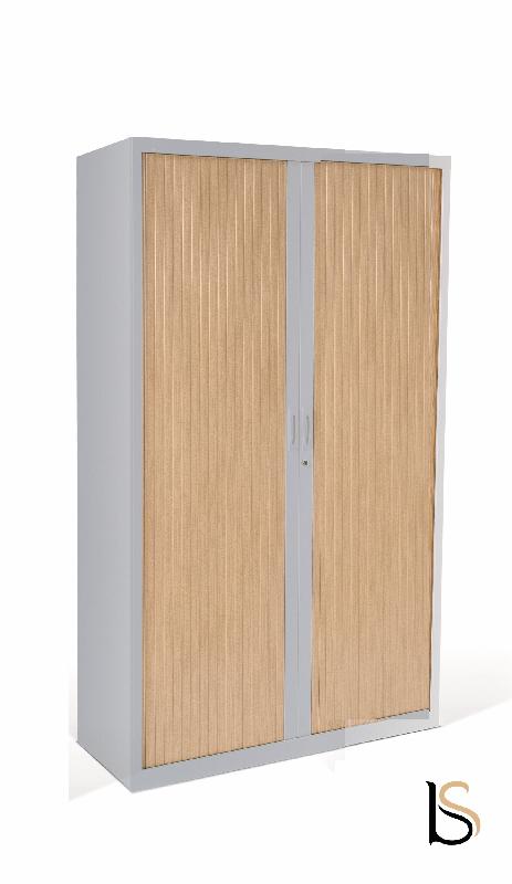 Armoire haute à rideaux boisArmoire haute à rideaux bois monobloc avec différents coloris pour la structure et les rideaux. - Nombre d'étagères : 4 - Charge maximale par étagère : 110 kg - Verrouillage : Par came à 90° anti - crochetage - Épaisseur de tôle : 0.8 mm - Type de structur