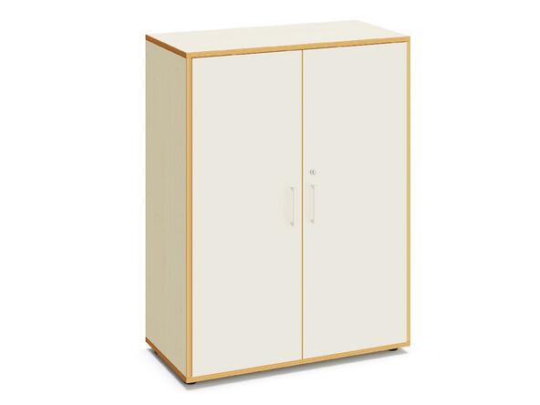 Armoire mi - haute portes battantes L80 H113/79 cm. Bois mélaminé. Porte battante avec serrure. Vérins de réglage. Garantie 3 ans. - Marque : MDD