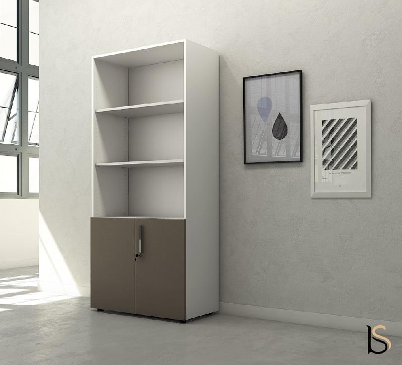 Le meuble propose un espace de rangement bénéficiant d'un jeu de portes battantes fermant à clé et d'une niche ouverte de 3 niveaux pour les documents les plus utilisés permettant ainsi de libérer de l'espace sur votre bureau.