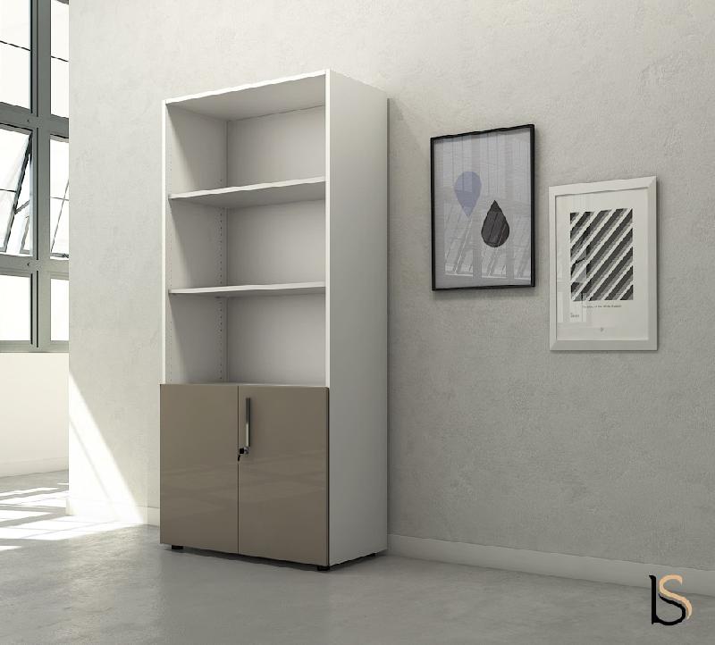 Le meuble propose un espace de rangement bénéficiant d'un jeu de portes battantes fermant à clé et d'une niche ouverte de 3 niveaux pour les documents les plus utilisés permettant ainsi de libérer de l'espace sur votre bureau.