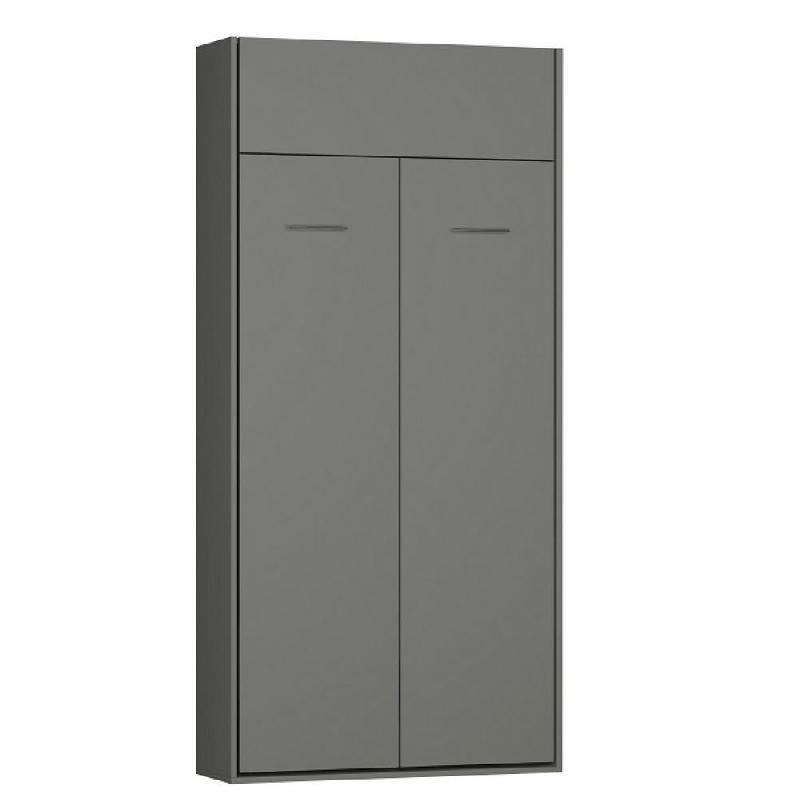 Armoire lit escamotable Dynamo - Gris mat - Ouverture assistée - Couchage 90x200 cm - Sommier à lattes -