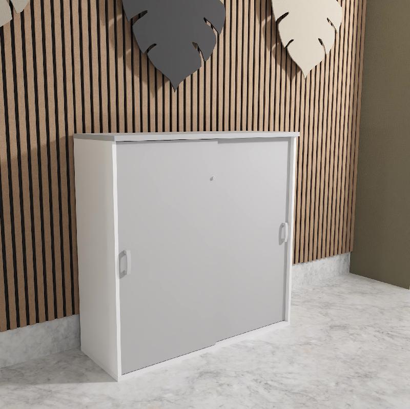 Vous préférez une esthétique plus sobre et épurée ? Découvrez l'Armoire de Bureau basse Coulissante Monocolore Mobel Linea pour un rendu ton sur ton minimaliste.