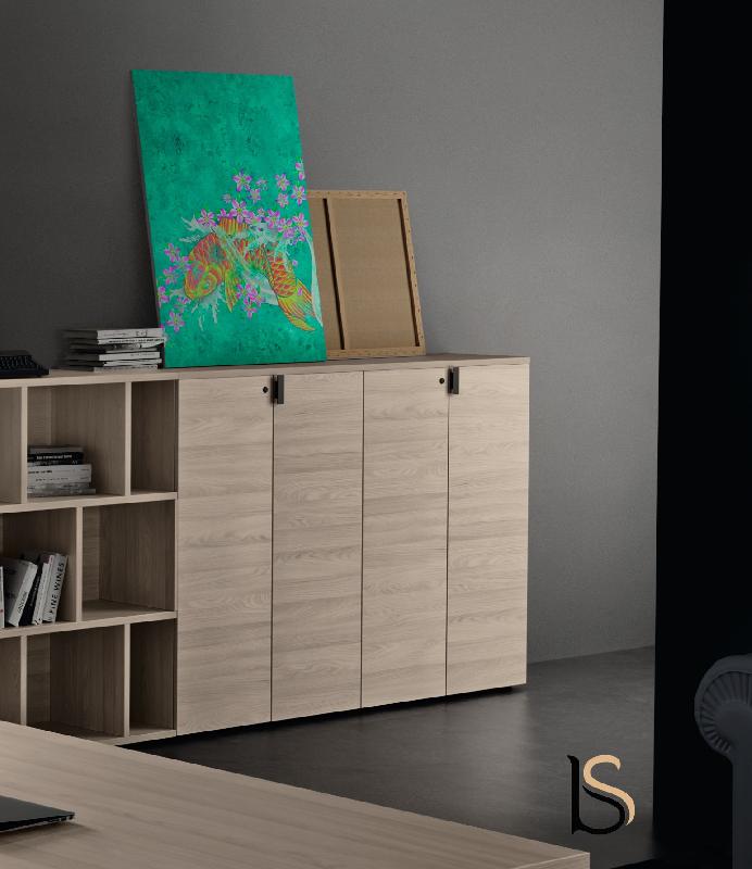 Ce meuble de rangement s'intégrera dans tous types de bureaux et offre les mêmes finitions que le mobilier des collections issues du fabricant Dellarovere.
