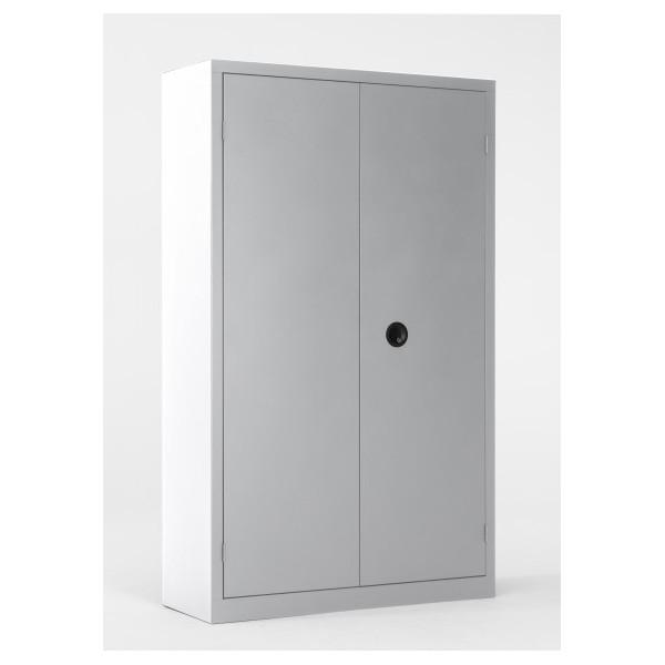 Armoire de bureau verrouillable dotée de 2 étagères. - Étagères réglables en hauteur individuellement. - Acier revêtu par poudre de qualité. - Fermeture avec poignée tournante et serrure à cylindre avec deux clés. - Portes battantes renforcées (angle d'ouverture : 130°) équipées d