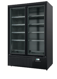 Armoire négative porte vitrée en froid ventilé - Caractéristiques de l'armoire négative : - Gaz réfrigérant R290 - Température - 18°C/ - 24°C - 1 éclairage LED horizontal - 2 pieds ajustables + 2 roues - Thermostat mécanique - Porte à fermeture automatique - Interrupteur lu