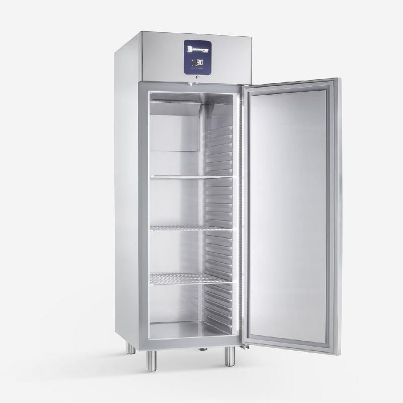 Armoire réfrigérée positive - 2/+8°C avec une porte pleine et une finition extérieure en inox. Cette armoire réfrigérée positive de 700 L vous permettra de conserver parfaitement vos aliments au quotidien.