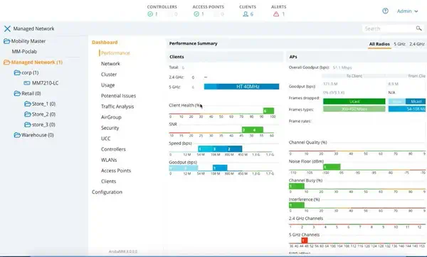 - Analyse et sécurité : Intègre des services critiques comme AppRF et RFProtect pour une gestion optimisée des réseaux.
