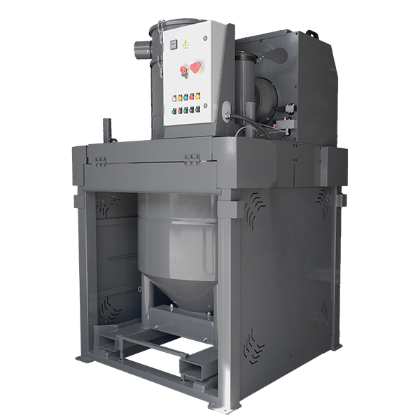 Le grand récipient de collecte permet une aspiration de longue durée, sans entretien, et se vide facilement à l'aide d'un chariot élévateur.