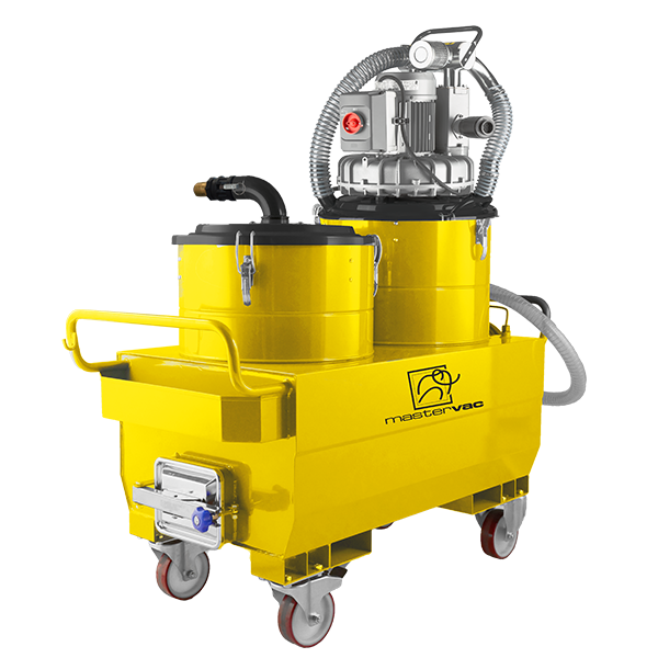 Aspirateur Mastervac spécifiquement conçu pour l'aspiration simultanée d'huile et copeaux permettant la séparation de l'huile à partir des copeaux, la récupération de l'huile et la vidange rapide du bac de récolte.Utilisé pour les vidanges et le nettoyage des machines outils.