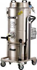 Le matériel aspiré se dépose dans le collecteur (INOX AISI304) sur roues, d'une capacité de 35 litres, monté sur roues et doté d'un système pratique de décrochage rapide, avec possibilité d'ensachage du matériel aspiré (sacs de sûreté pour poussières toxiques disponibles en option). La structure est en acier inox, et toutes les composants métalliques sont mises à la terre (avec chaîne de sûreté). La machine est montée sur 4 roues antistatiques, dont 2 pivotantes et 1 dotée de frein.