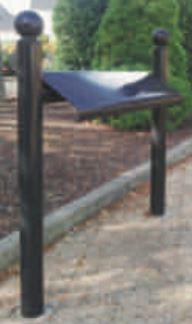 Cet assis - debout est la solution séduisante et discrète pour les lieux publics et les zones de repos piétonnes. Les piétements sont en tube d'acier de Ø 76 mm. L'assise est en tôle d'acier perforée, de 2,5 mm, cerclée d'un tube d'acier de Ø 38 mm. 4 pommeaux aux design différents au choi