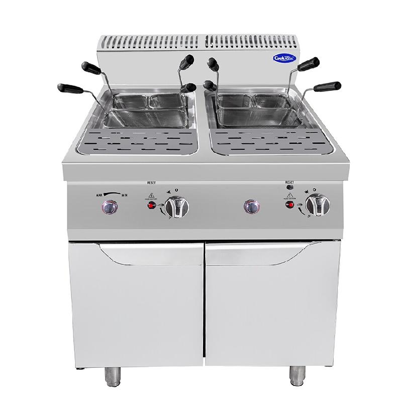 70QCPE800 - Largeur (mm) : 800 Profondeur (mm) : 700 Hauteur (mm) : 870 Poids (kg) : 81 Puissance totale absorbée (KW) : 15 Capacité de la cuve (L) : 26 (x2) Energie : Électrique