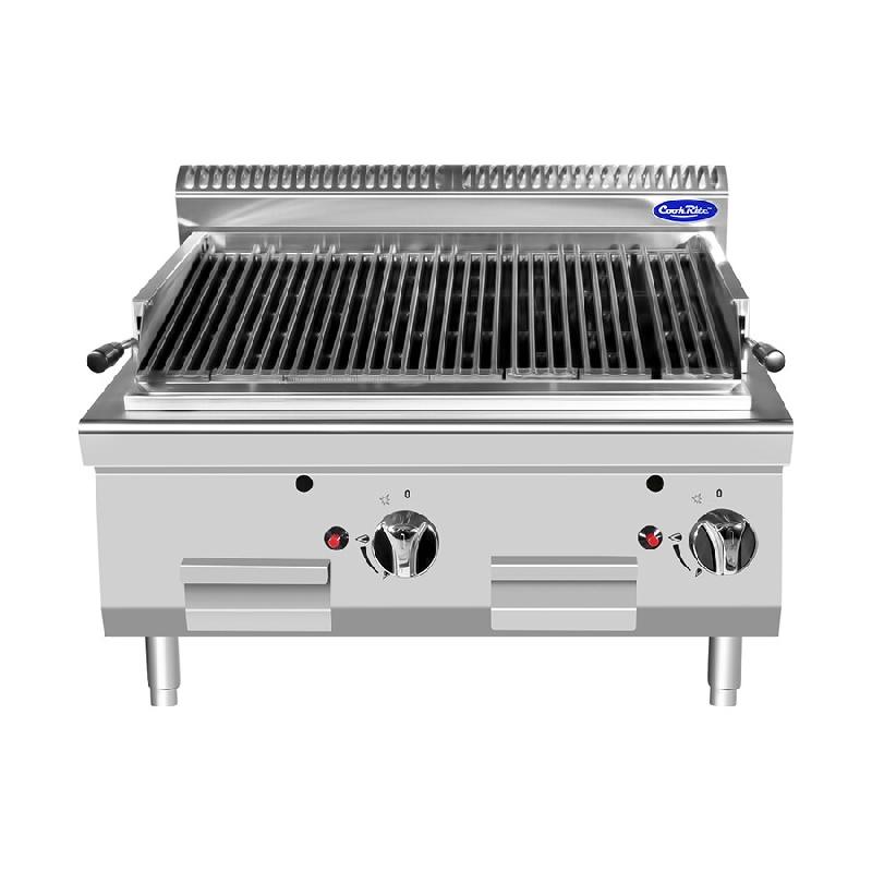 GRILL À PIERRE LAVIQUE - Adapté pour la cuisson de la viande et du poisson - Caractéristiques : - Réchauffement par l’intermédiaire de brûleurs à gaz - Pierre lavique surmontée par une grille de cuisson en fonte brevetée - Fonctionne au Gaz GPL ou Gaz méthane - Bac de récupératio