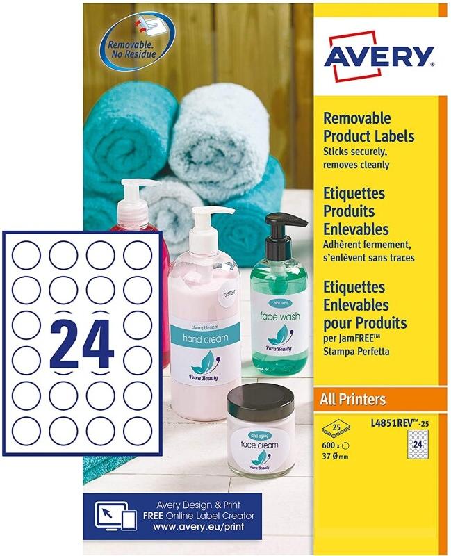 AVERY 600 étiquettes enlevables Laser blanc, format Ø 37 mm (25 feuilles / cdt) - 5014702134135