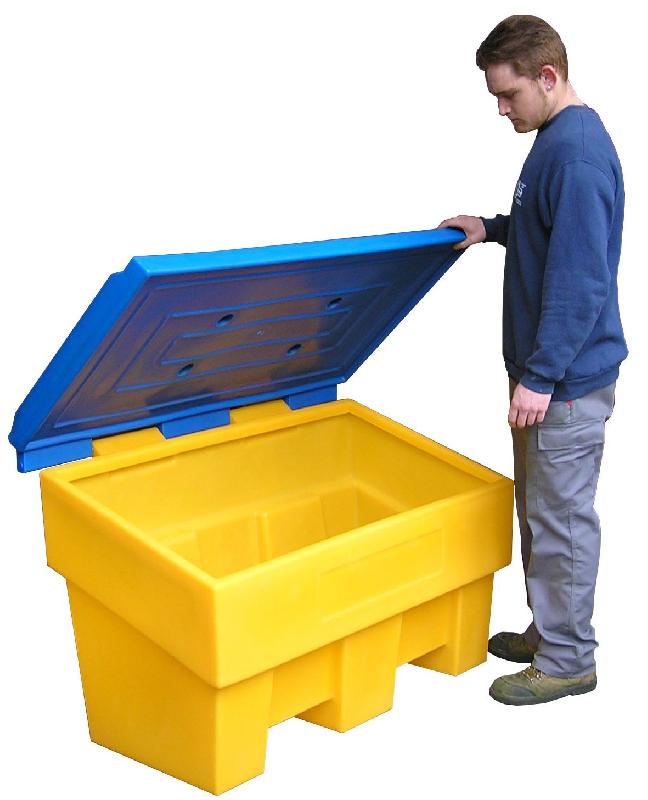 BAC A SEL OU SABLE 110L Traité Anti - UV et fabriqué dans un matériau résistant, ce Bac à sel et sable est utilisé en Stockage intérieur ou extérieur par les services techniques des villes et villages, les collectivités, les aéroports, les stations service...Parfaitement Solide et