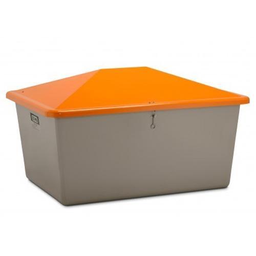 Bac à sel en polyester fibre de verre d'une capacité de 550 litres sans ouverture d'écoulement. Pour stocker du sable ou du sel aux abords des routes, carrefours, voies piétonnes, parkings, sites industriels, aéroports... : Bac très stable, léger, facile à transporter et à stocker. Couvercl
