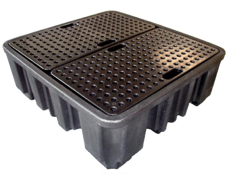 Bac avec caillebotis en polyéthylène recyclé pour 4 fûts de 220 l - volume 480 l (soit 50 % de rétention)