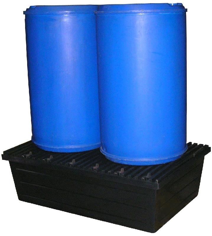 Bac de rétention avec OU sans caillebotis amovible finition polyéthylène fond plat pour 2 fûts de 220 l - volume 240 l (soit 50 % de rétention)