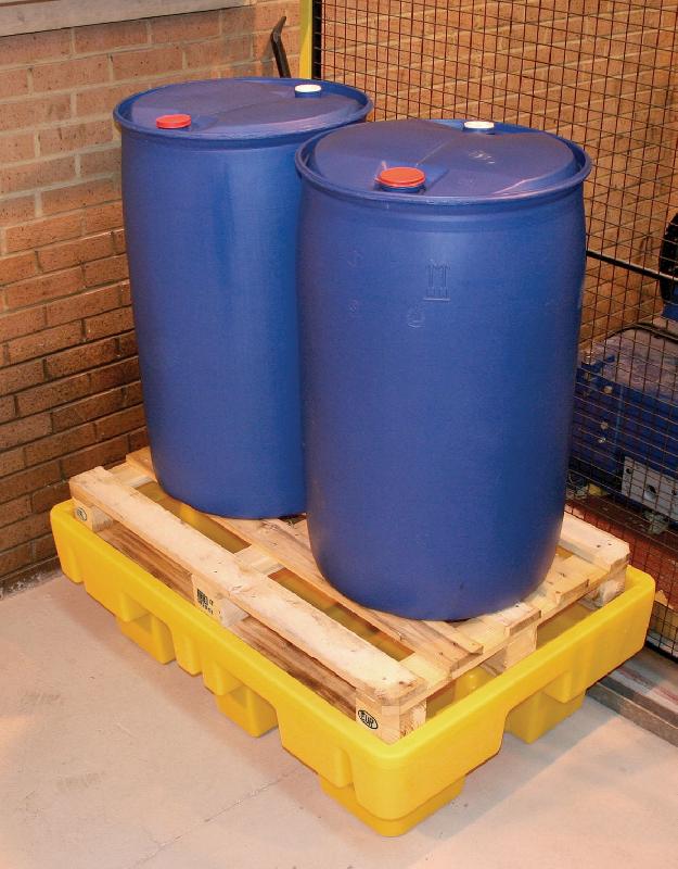 Bac de rétention PEHD sans caillebotis pour palette de 2 fûts de 220 l - volume 230 l - charge admissible 650 kg