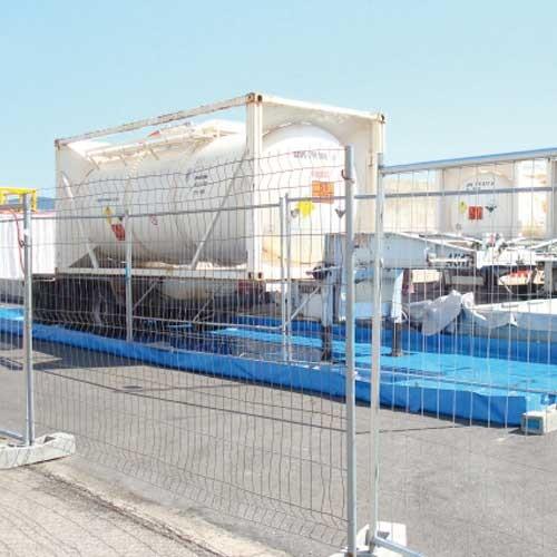Caractéristiques - Longueur : 17500 mm - Largeur : 4800 mm - Hauteur : 250 mm - Bac de rétention souple volume 21000 L avec bâche de protection. - Un système multifonctionnel de stockage secondaire pour fuites de carburant ou de pollutions chimiques. Conforme à la législation environnemen