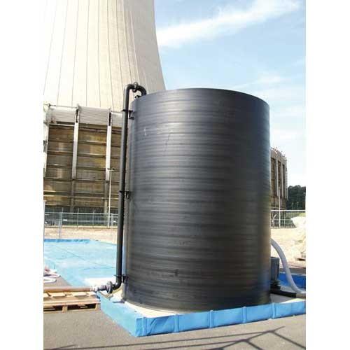 Un système multifonctionnel de stockage secondaire pour fuites de carburant ou de pollutions chimiques. Conforme à la législation environnementale. Bac souple de coloris NOIR 600 gr/m² - Equerres aluminium - Fourreaux couleur jaune