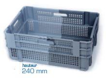 Bac à fond plein perforé et parois ajourées, gerbable et - emboitable par rotation pour un stockage minimum. - Applications : transport, stockage, manutention, surgélation, - séchage, congélation, portage repas, tunnel de lavage. - Ajourage idéal pour la circulation de l'air, l'écoulemen