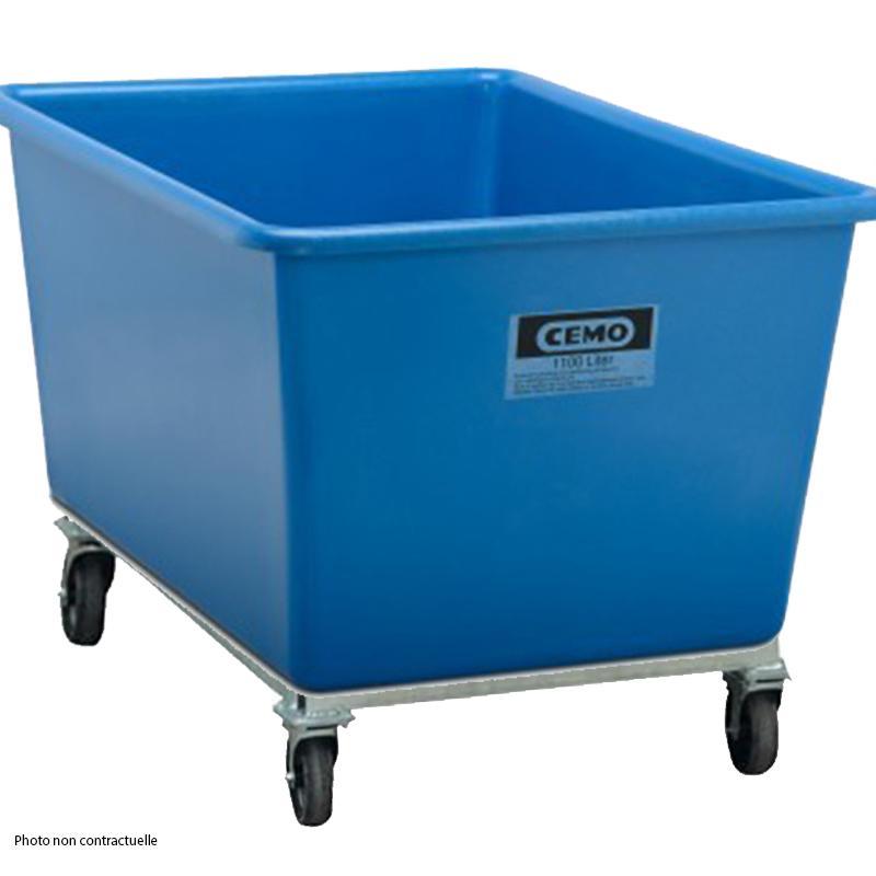 Bac PFV bleu 550 litres sur roulettes - Résistant aux huiles, fioul, gasoil, produits chimiques - CEMO - 7995R -
