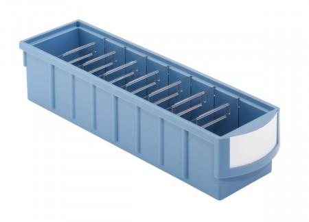 2116016 - Bac tiroir de rangement en plastique Multibox 600x160Coloris Bleu.Etiquette fournieDimensions :> Externes : L.160 x P. 600 x H.100 mm> Poids : 0.69 kgOptions : possibilité de cloisonner le bac tiroir avec séparations transparentes. 10 séparateurs maximum par bac P.600 mm.