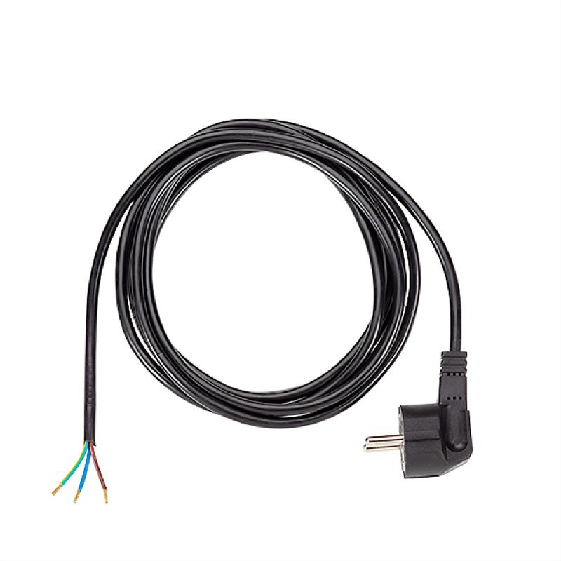 Cordons d'alimentation secteur avec une extrémité dénudée - Caractéristiques principales : - Type de fabrication : PVC, PBT, cuivre souple - Valeur nominale : 10 - 16A, 250V - Type de connecteur : Fiche secteur surmoulée droite ou coudée 2 Pôles + Terre (CEE7 - VII, 2 broches Ø 4.8 mm²