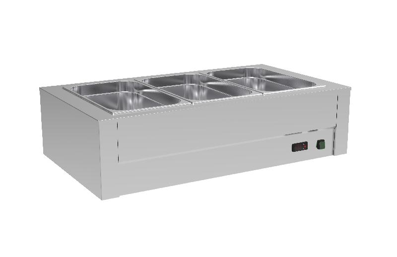 Ce meuble bain - marie à eau sans réserve (arrière ouvert) est adapté aux besoins intensifs en restauration. Il offre un chauffage par résistances silicone avec réglage digital. Caractéristiques : Inox AISI - 304 18/10, Chauffage (+30°/+90°C), Thermostat électronique, sans réserve. - Mar