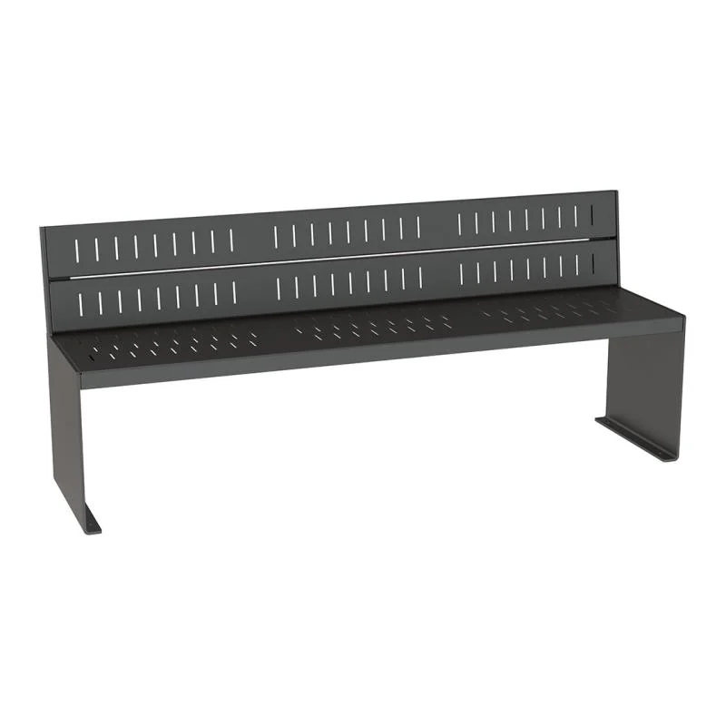 Banc extérieur avec ou sans dossier, possédant un piétement esthétique qui saura se distinguer dans les divers espaces de confort. Ce banc sans accoudoirs totalement en acier, est très design et apportera une touche contemporaine à vos espaces urbains. Ce banc métallique d'une longueur de 1
