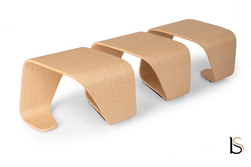 L'assemblage unique et original est réalisé à partir d'un panneau en contreplaqué de hêtre incurvé.