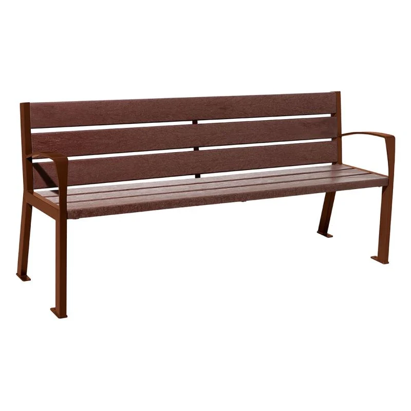 Le banc de ville Silaos® 6 lames en plastique recyclé offre une assise confortable avec un design sobre et élégant. Ce banc urbain, proposé avec ou sans les accoudoirs, trouvera aisément sa place dans vos villes, parcs et jardins. Le plastique recyclé est un matériau durable qui ne nécessit