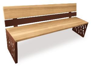 Banc Venise - Longueur : 1800 mm - Structure en acier : 450 x 450 mm, épaisseur 3 mm - Version acier et bois : assise bois exotique, 3 lames de bois de largeurs différentes, épaisseur 36 mm, dossier tout bois ou acier et bois - Version tout acier : assise et dossier en tôle -
