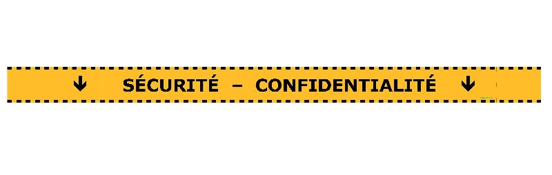 Bande adhésive de distanciation avec texte "SÉCURITÉ - CONFIDENTIALITÉ" à coller au sol