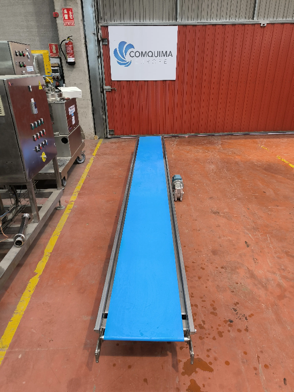 Bande transporteuse - Puissance du moteur : 0,37 kW, 1375 tr/min, 50 Hz, 230 V - Dimensions de la bande : - Largeur de la bande : 500 mm - Longueur de la bande : 5500 mm - DimensionsLongueur du ruban5500 mmLargeur du ruban500 mm - Informations pour le transportLongueur5500 mmLargeur800 mmPoids